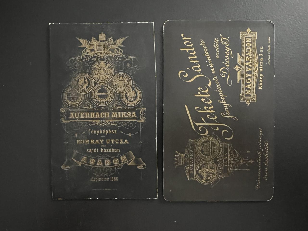 Auerbach Miksa Arad, Fekete Sándor Nagyvárad keményhátú fotói - Papírrégiségek | Coinpoint