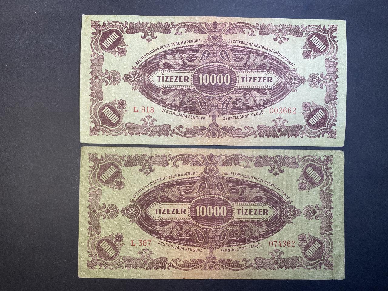 Tízezer Pengő (1945L) felülbélyegezve EF,VF Adamo P23E 2db - Pengő 1926-1946 | Coinpoint